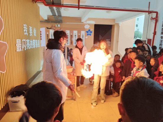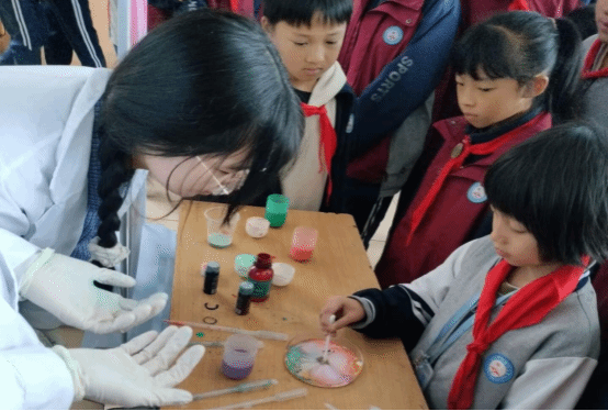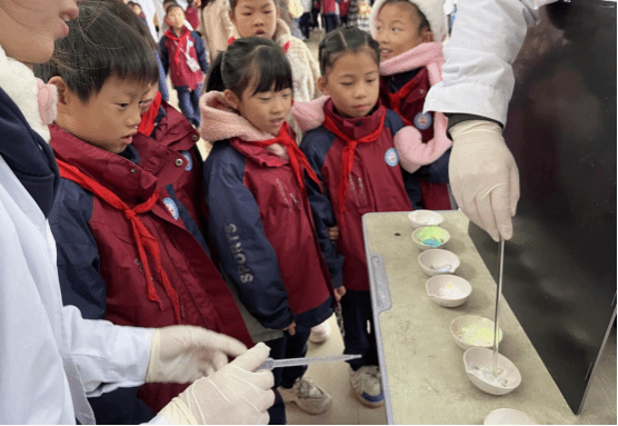 11 月 20 日上午,2023级化学工程与工艺班的同学们前往美加墨世界杯官方网站附属小学,为小朋友们演示趣味化学实验。“牛奶彩虹”、“掌上火焰”、“魔法药水”、“焰色反应”、“水中火焰”、“激光爆气球”、“熔岩灯”、“神奇的紫甘蓝”、“魔法变色水”等一系列神奇实验轮番上演,奇妙现象令观摩学生们惊叹,极大激发了他们对学习科学实验的热情。