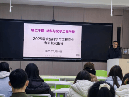 为帮助我院食品科学与工程专业2025届考研学子复试科学备战,提升应试能力与综合竞争力,2025年3月14日上午,食品教研室在我院依仁楼B305智慧教室对考研初试上线的学生举办了一场专题复试指导会。专业负责人谢勇老师就专业知识深化、科研能力展示、综合素质表现等方面提出了详细建议,特别强调了复试期间调整好心态的重要性,同时要求每位同学要认真梳理本科期间各自的实践经历和学习心得;谢玮和朱苗老师对笔试环节、实验技能考核、面试应对技巧、简历制作、考前准备等方面也提供了宝贵的参考建议。参会学生感言:原本对复试过程一知半解,现在不仅理清了重点,还学到了很多‘加分小技巧’,接下来更有底气迎接复试挑战!