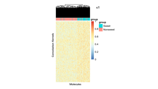 图2. 甜味分子和非甜味分子与第三层卷积核的最大相关系数