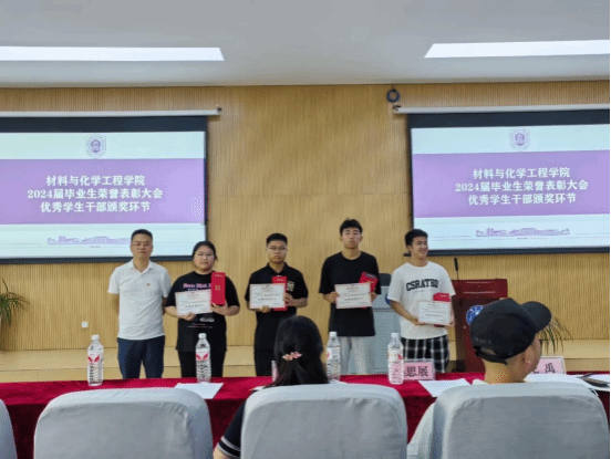 6月14日下午,我院2024届毕业生荣誉表彰大会在博思楼206教室隆重举行。院党委书记吴思展、副书记龙禹、副院长陈仕学、团总支负责人郑秋实、各毕业班辅导员、2024届毕业生代表、材化院全体学生。大会由学生科副科长向媛主持。