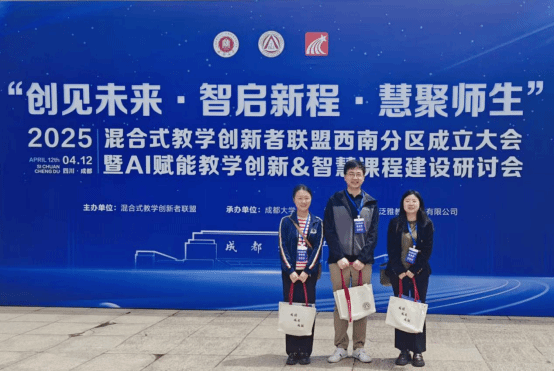 2025年4月12日,“混合式教学创新者联盟西南分区成立大会暨AI赋能教学创新和智慧课程建设研讨会”在成都大学隆重召开,我院教师谢玮参加该会议。