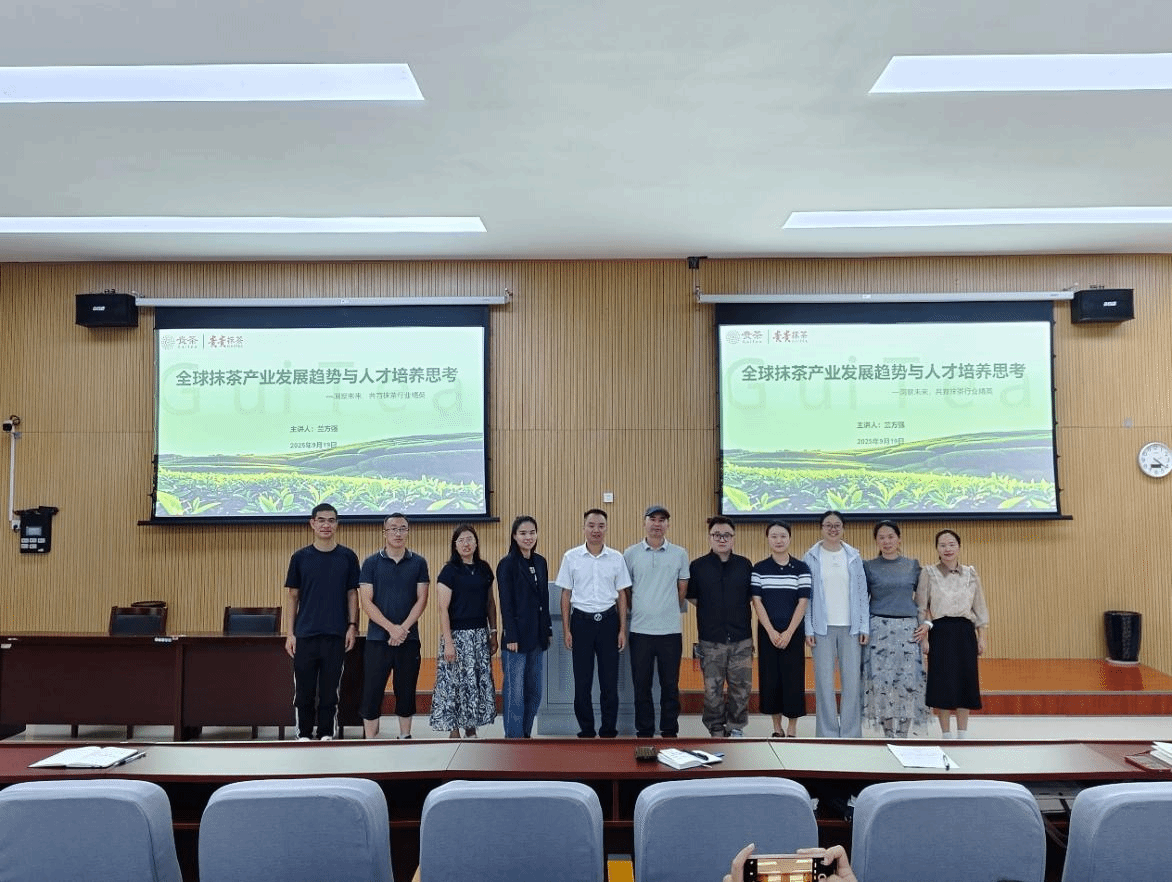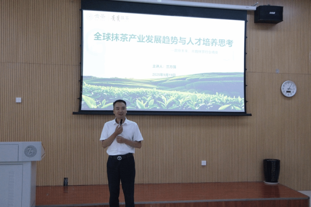 2025年9月19日,贵州贵茶集团副总经理、贵州贵茶抹茶研究院高级研究员兰方强应邀赴我院开展专题讲座,题为《全球抹茶产业发展趋势与人才培养思考》。我院食品科学与工程专业师生及材料与化工硕士研究生共同参加,现场学术氛围浓厚,反响积极。