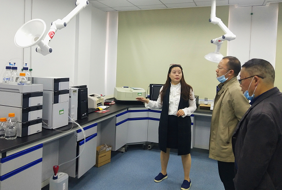 在交流座谈会议之前,材化院院长石维领食品药品系教师前往铜仁市检验检测院实验室进行参观学习,在铜仁市检验检测院副院长舒娟的讲解下,材化院教师对检测院实验室的建设、仪器的种类等有了更深入的了解;随后,铜仁市检验检测院院长王毅领检测院相关部门专家前往材化院实验室进行参观,材化院院长石维、系主任罗海荣对实验室的整体情况以及锰产业展厅进行了详细的介绍。