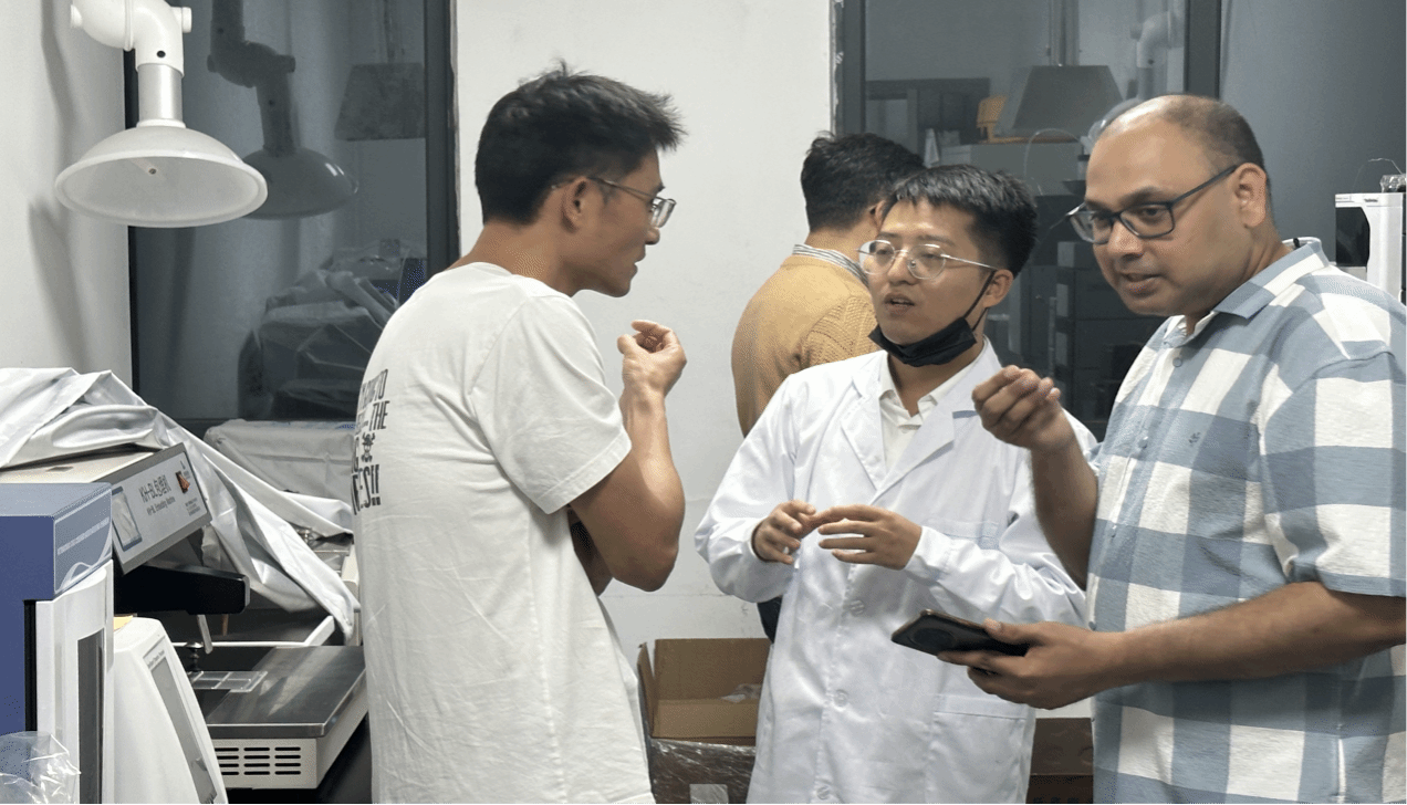 当晚19时30分,活动正式拉开帷幕。我院王凯博士首先代表学院向远道而来的外籍专家致以热烈欢迎,并简要介绍了我院在材料科学、化学工程等领域的学科特色及科研进展情况。随后,三位外籍专家分别围绕新能源材料、绿色化工与环境催化等国际前沿研究方向进行了专题报告,内容深入浅出,兼具学术深度与实践价值,引发了在场师生的广泛关注。在互动交流环节,师生积极提问,围绕学术研究、国际视野拓展以及跨文化合作等议题与外籍专家展开了深入探讨。现场气氛热烈,交流富有成效,充分展现了我院学生扎实的专业素养与开阔的国际化视野。随后,在我院教师陪同下,外籍专家参观了学科楼科研实验室。各课题组相关老师详细介绍了当前研究项目、实验设备配置及阶段性研究成果。外籍专家对我院在新型功能材料、绿色化工与先进医药等领域的研究工作给予高度评价,并就未来可能的合作方向提出了建设性意见。