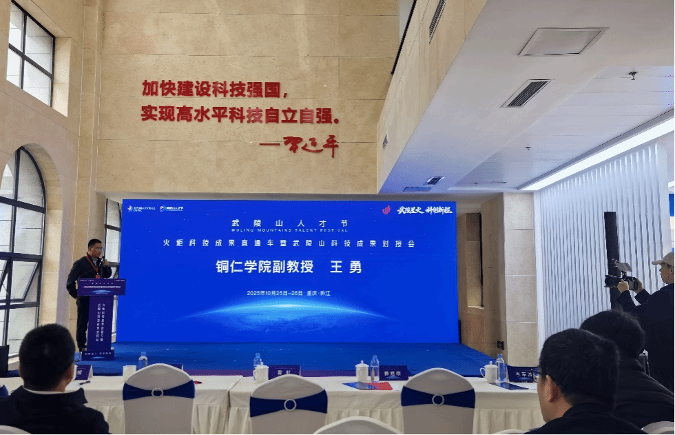 2025年10月24日至26日,由重庆市黔江区科学技术局主办的首届武陵山人才节将在重庆市黔江区举行。本届人才节以“武陵热土·才领未来”为主题,精心策划“1+5”系列活动,邀请两院院士及行业领军人物围绕武陵山区域产业发展、科技创新、乡村振兴等关键议题发表主旨演讲,深入把脉区域发展瓶颈,建言献策,贡献智慧,助力产业升级。活动期间同步举办武陵山高质量发展主旨演讲会、武陵山文旅人才交流会、火炬科技成果直通车暨武陵山科技成果对接会、武陵山卫生健康人才研讨会以及武陵山急需紧缺人才专场招引洽谈会,着力打造集人才交流、智力碰撞、招才引智、项目合作与成果展示于一体的区域性人才工作综合平台,全面赋能武陵山片区高质量发展。我院化学工程系教师王勇、杨敬杰应邀出席。