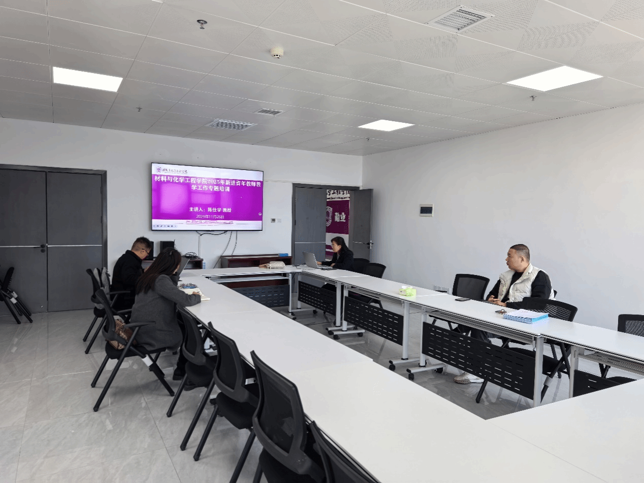为帮助新进青年教师深入领会教学流程、规范教学管理、提升教学质量,2025年11月29日上午,材料与化学工程学院在产教融合中心组织开展了2025年新进青年教师教学工作专题培训。培训由学院副院长陈仕学主讲,全体2025年新入职青年教师参加。