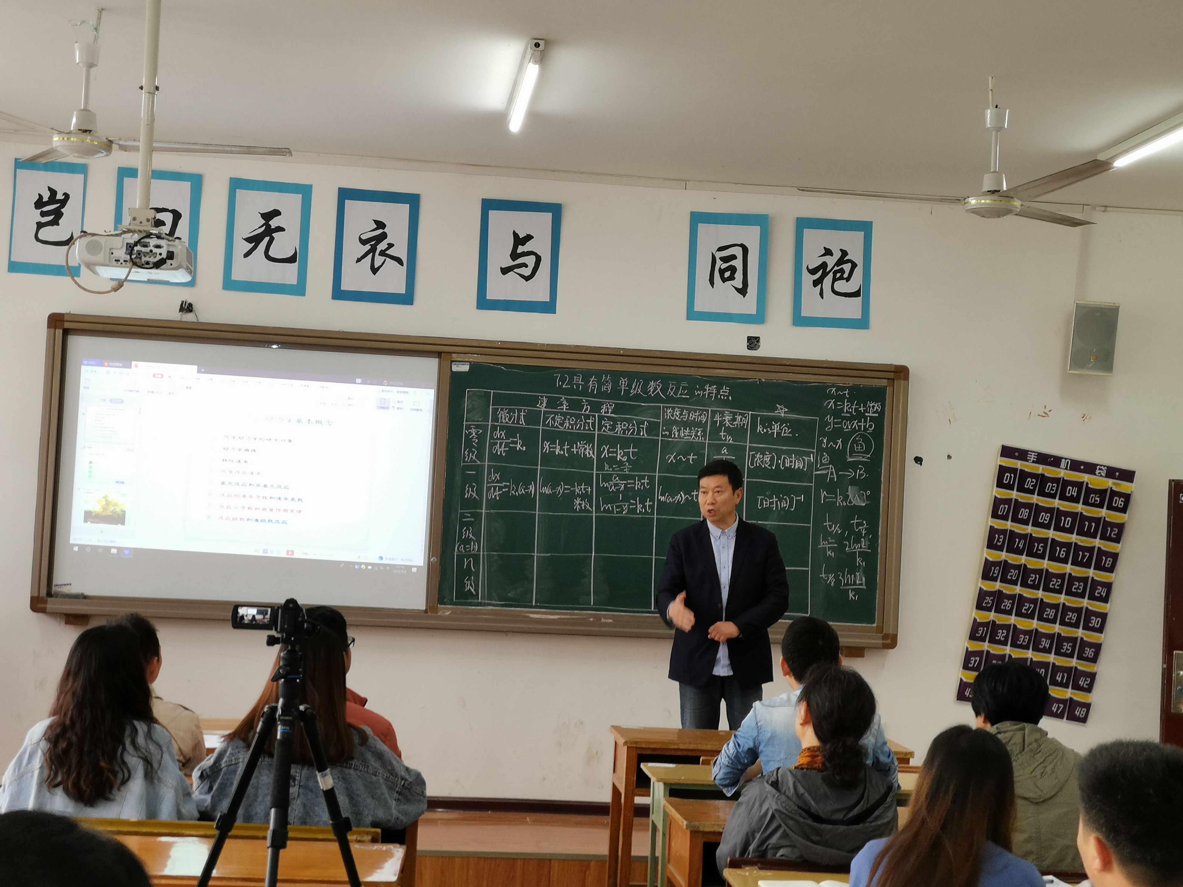 王霞老师通过引入“贵州紫薇王树”提出问题,紧扣问题对《物理化学》中“零级反应”和“一级反应”知识点进行了生动的讲解。代鸣老师说,教师们是知识的引导者,而不是传递者,应该大胆改变原有的教学观念,结合学生已有的生活体验,深入思考“如何上好一堂课”。代鸣教授对听课的教师和同学所提出的问题一一进行解答,在这个学习过程中,教师与同学收获甚多。