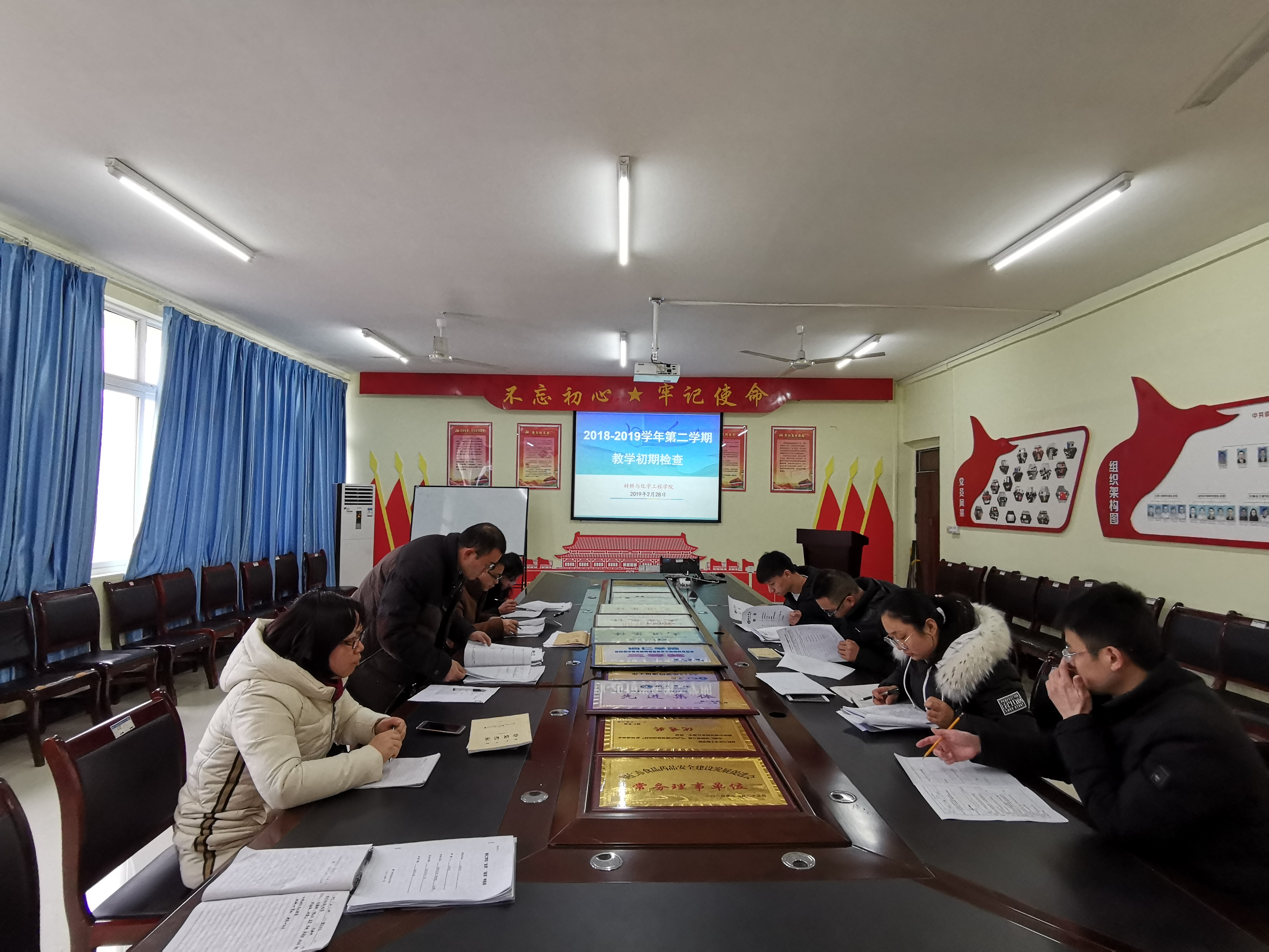 为了迎接审核评估和做好新学期教学质量监控工作,及时了解各系教学计划、安排与落实情况,确保教学正常运行,2019年2月28日,我院在会议室对本学期教学工作进行了初期检查,参加检查的老师有冷森林副院长,各系主任,教研室主任及教务科。
