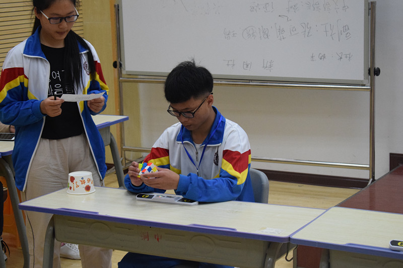 5月13日,世界杯官网材料与化学工程学院魔方社团在铜仁一中大礼堂与铜仁一中头脑风暴魔方社团进行魔方联谊赛,铜仁一中头脑风暴魔方社团指导老师吴宇灵,世界杯官网材料与化学工程学院老师罗海荣、朱苗出席联谊赛现场,世界杯官网魔方社团参赛人员、铜仁一中头脑风暴魔方社团参赛人员、裁判员及观众共计78人参加联谊赛。联谊赛由铜仁一中学生谭丽薇,王智主持。