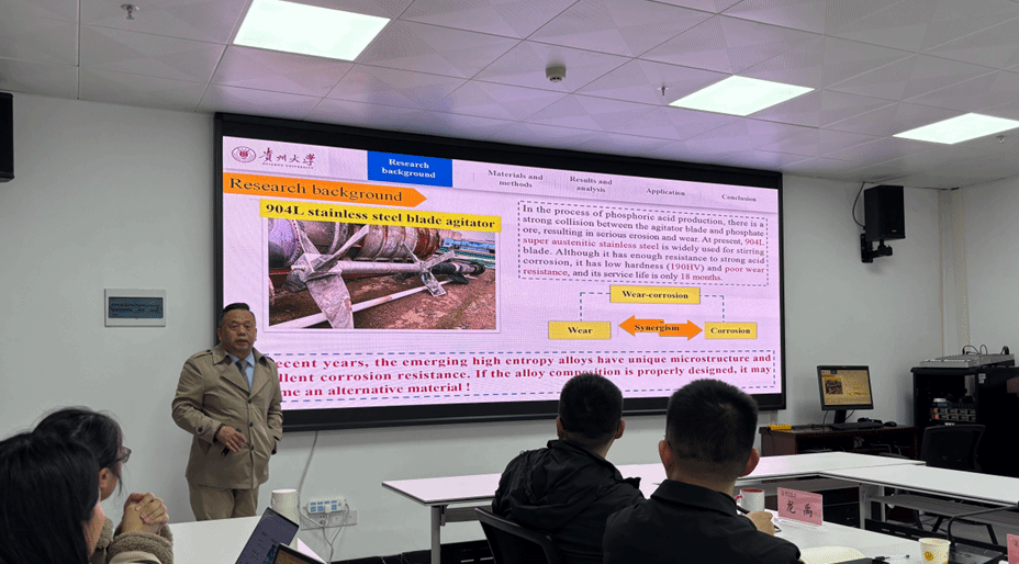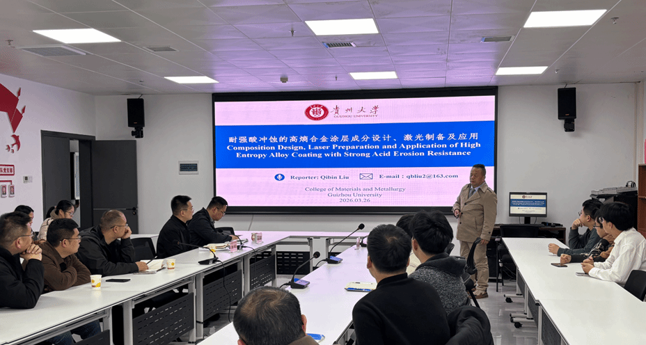 2026326日,为进一步拓宽学生学术视野,增强科研创新意识,提升学科建设与人才培养水平,我院特邀贵州大学材料与冶金学院刘其斌教授莅临讲学,并围绕学科建设、科研组织和研究生培养等工作开展专题指导。刘其斌教授以“耐强酸冲蚀高熵合金涂层成分设计、激光制备及应用”为题,为材料与化学工程学院师生带来了一场紧贴产业实际、兼具学术深度与应用价值的精彩讲座。