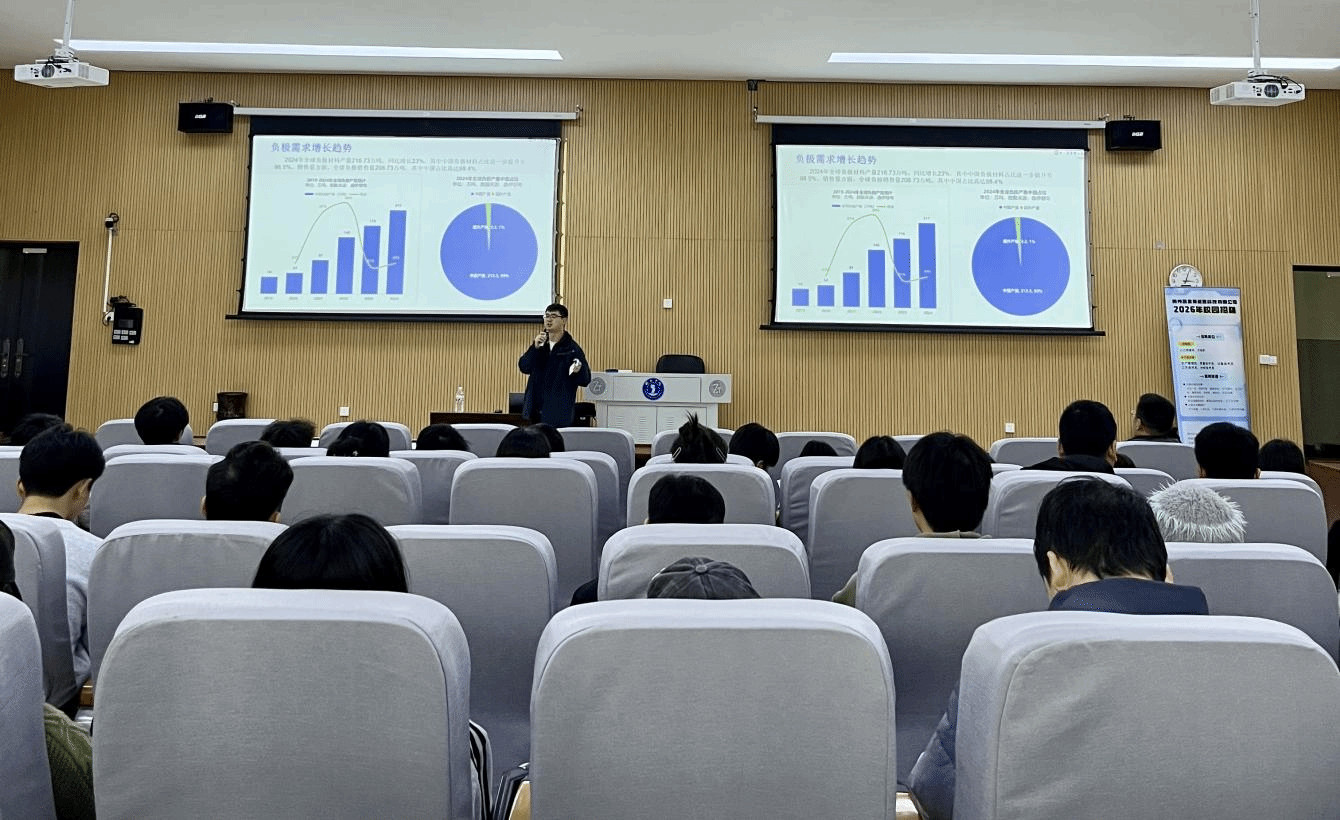 随后,贵州凯金新能源科技有限公司人力资源部雷海经理围绕公司发展历程、核心业务布局、新能源行业发展趋势展开详细介绍。重点解读了与学院专业高度匹配的生产管理、质量技术、设备技术等岗位的招聘要求、工作职责及职业发展通道。同时,就同学们普遍关注的薪资福利、晋升机制、培训体系、工作环境等问题进行逐一解答,清晰呈现了公司的人才培养理念与发展平台优势,让同学们对企业及岗位有了全面、直观的认知。在互动交流环节,同学们结合自身专业学习、职业规划等情况积极提问,就岗位专业匹配度、实习安排、未来发展空间等问题与企业代表深入沟通,现场交流氛围热烈。