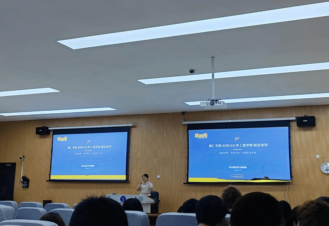 为切实做好材料与化学工程学院2026届毕业生就业服务工作,帮助同学们再次明晰就业方向、提升求职技能、增强职场竞争力,4月9日14:30,我院特邀贵州新西南教育专家杨朝棚,于博思楼105教室举办“2026届毕业生就业形势分析与面试技能专项培训”。讲座由我院学生科(团委)科长(书记)向媛老师主持,贵州新西南教育团队及专家杨朝棚应邀到场,全院2026届材料、化工等专业毕业生200余名及部分23级学生到场聆听。