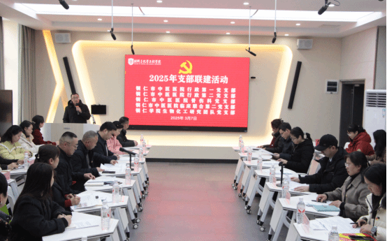 为深入学习贯彻党的二十大精神,深化党建与业务融合发展,3月7日下午,生物化工研究团队党支部与铜仁市中医医院行政第一、第二党支部、骨伤科党支部及临床联合第二党支部在世界杯官网学科楼514智慧教室联合举办了以“党建联建聚合力,携手共进促发展”为主题的支部联建活动。活动由生物化工研究团队党支部书记谢勇主持,通过支部建设简介、专题党课、业务学习、经验共享、交流研讨等形式,就如何在党建引领下探索高校与医疗机构资源共享、优势互补的产学研医协同发展新路径达成了诸多共识。