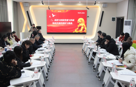 科技创新是经济社会发展的核心动力,高校和医院作为知识创新与医疗服务主阵地,需以党建为引领破解科研资源分散、评价体系单一等难题,为高质量发展提供思想与组织保障。陈仕学在党课上强调,以党建引领科研创新,搭建科研合作平台,共享设备与人才资源,打造“党建+科研”品牌活动,推动科研成果转化,并列举了国内几所著名高校和研究单位的“一融双高”模式、“党建护航科研”等模式,在生物医药领域取得多项关键技术突破。