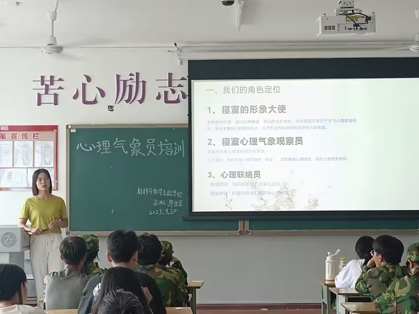 培训会上,廖世佳老师从角色定位、日常工作、工作基本原则还有沟通技巧四大方面为同学们讲解指导了如何做好心理气象员工作。