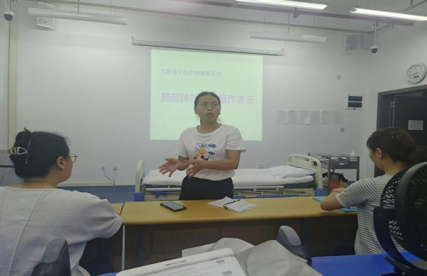本次教研活动由三个不同年级的同学一同参加,由毕业班技能获奖的同学进行演示,不仅激发了同学们关于操作技能比赛的学习热情,达到了教学相长的目的,还给低年级的同学树立了良好的正性激励的学习榜样,让他们更加有自信能学好护理专业技能。本次教研活动让同学们深入掌握了肺部体格检查的要领,相信在之后的临床实习及技能比赛中,他们可以更加得心应手,更加自信。