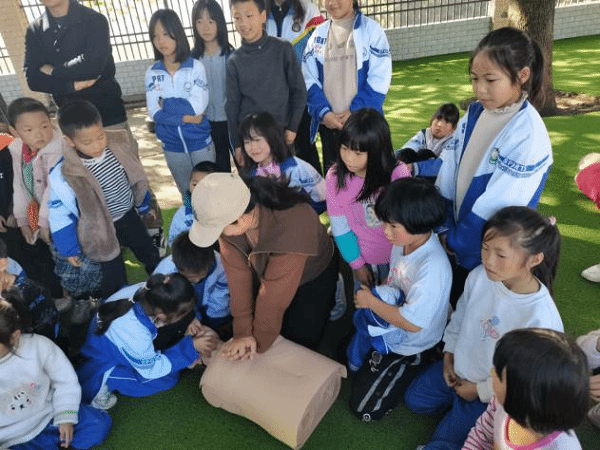 在培训中,杨芬教授为四年级的同学们做了一场“海姆立克急救法”的课程教学,她从同学们在吃饭堵塞咽喉等日常生活行为出发,以小学生们最感兴趣的实践问题边讲解边实践示范,同学们一边开心回答问题,一边以实际生活中遇到的相关问题向杨芬教授提问,杨芬教授运用体育专业知识,结合“海姆立克”急救知识一一回答,并对每一个上台参加实践操作的学生进行细心的指导,使全班34名学生都掌握了“海姆立克急救法”技能。方新博士、周智红教授、张玉军教授为部分老师、8年级(1)班学生进行“心肺复苏”技能的培训,方新博士从发现病人、环境评估、自我保护措施、120拨打、旁人救援、以及对病人实施心肺复苏实际规范性操作、病人复苏心理安慰等进行了讲解与演示。培训过程中,部分老师、学生亲自进行现场演练,培训项目成员进行现场规范指导,并真实体会到一个病人在发生危急情况下所需要的“现场应急救护”是多么的重要,并认真反复进行规范性练习,掌握了“心肺复苏”急救实践的基本操作。