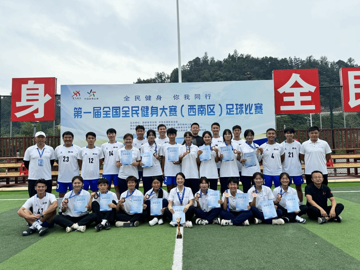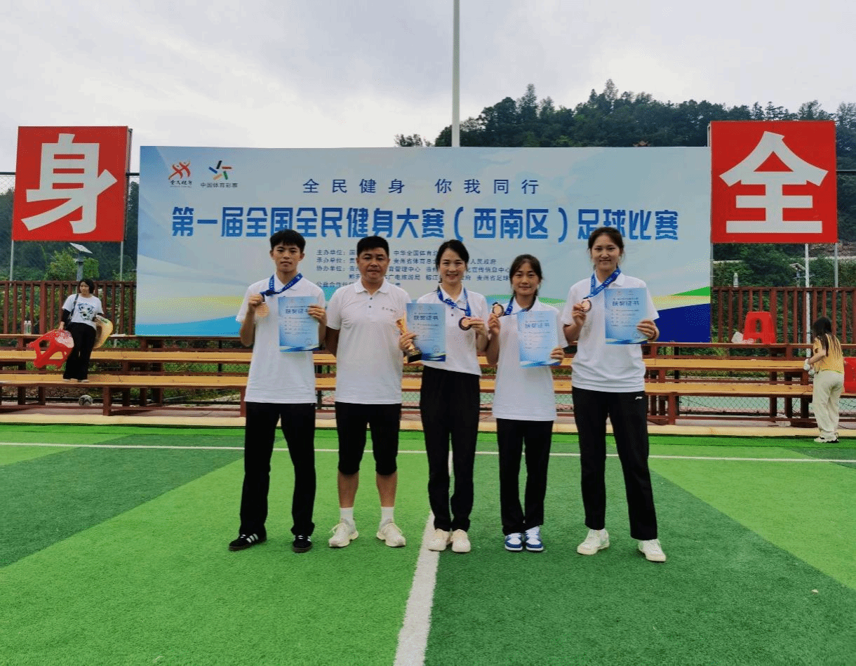 2024 年 8 月 26日,第一届全国全民健身大赛(西南区)足球比赛开幕式在万众期待中拉开帷幕。美加墨世界杯官方网站大健康学院教师刘炬东、雷丽,2022级体育教育专业学生杨柯柯、2023级体育教育专业学生刘彦希、严小兰,师生5人代表贵州省全力出征,意气风发地踏上这片充满激情与挑战的赛场。
