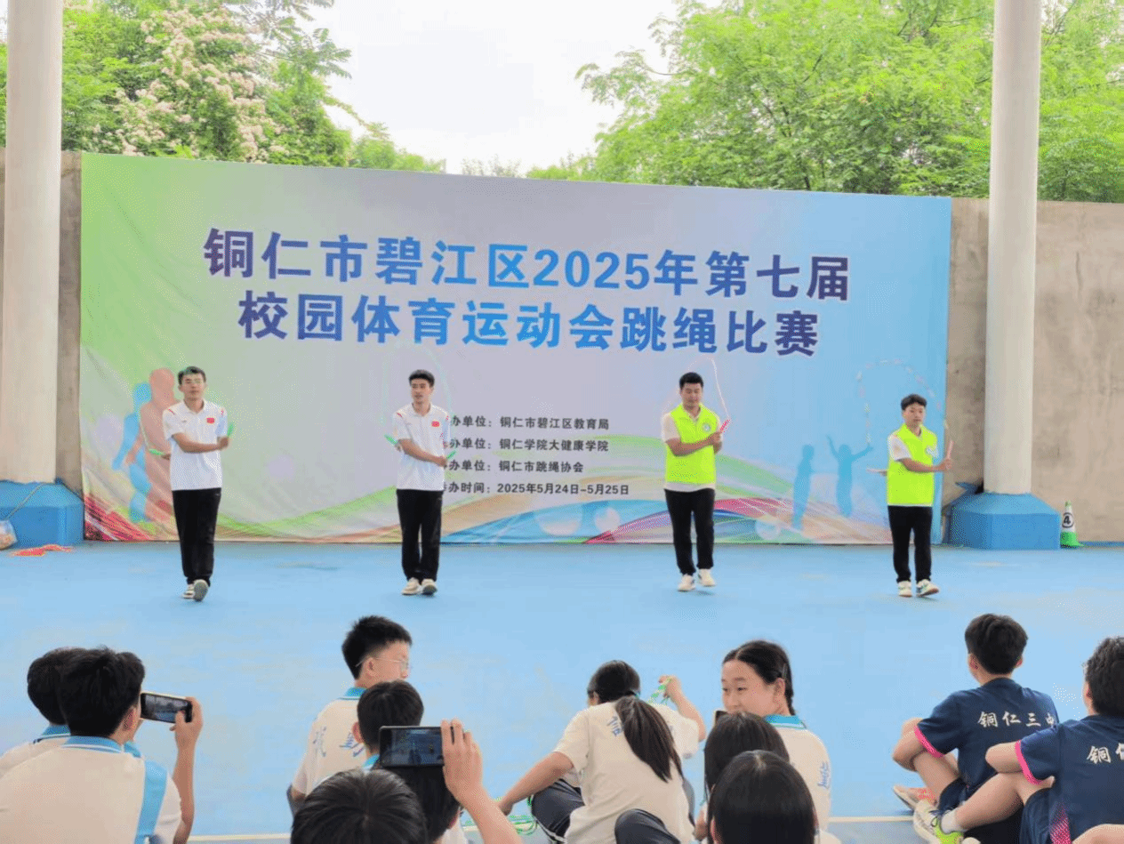 2025 年5月24日至25日,铜仁市碧江区第七届校园体育运动会跳绳比赛在美加墨世界杯官方网站风雨篮球场火热举行。本次比赛由碧江区教育局主办,美加墨世界杯官方网站大健康学院承办,铜仁市跳绳协会等单位协办,来自全区41支队伍、450余名运动员参赛,比赛规模创历届之最。