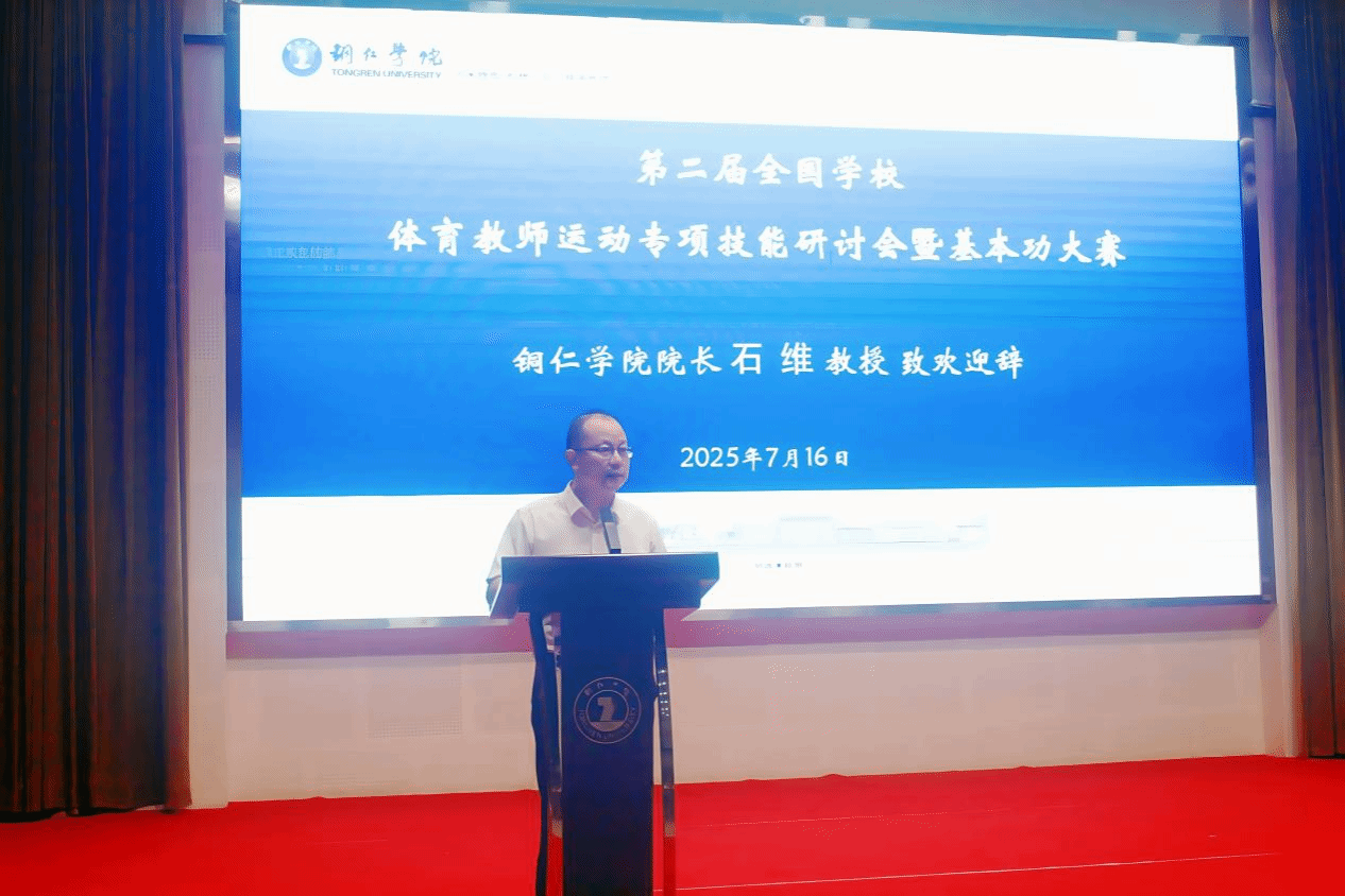 2025年7月16日,第二届全国学校体育教师运动专项技能研讨会暨基本功大赛(铜仁赛区)开赛式在世界杯官网人文生态馆举行。本次活动汇聚了全国体育教育领域的专家学者与一线教师,旨在深化体育教学改革,提升教师专项技能水平。来自山西农业大学、山东财经大学、武汉理工大学、首都师范大学、上海电力大学、海南医科大学、曲阜师范大学、桂林旅游学院等30多所高校及北京市大学生体育协会等共200多名教师参加了开幕式。开幕式由中国体育用品业联合会学校体育工作委员会副理事长、美加墨世界杯官方网站大健康学院院长余静主持。