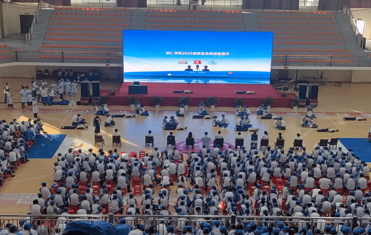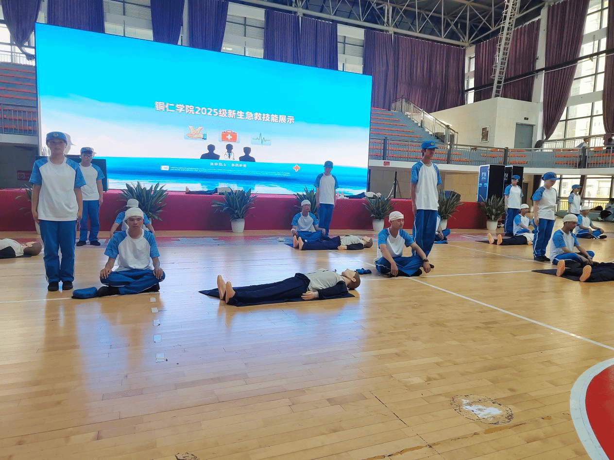 17日下午四点半,全体新生的急救培训成果展示在体育馆二楼举行,参与展示的人员是从各连队技能练习表现突出的新生遴选出来,经过集中训练的优秀学员,此次技能展示的重点考核心肺复苏、手部及头部创伤包扎三项技能。此次活动全体新生均参与观摩,现场还特邀护理专业教师进行技术指导。参与展示的新生操作规范、动作熟练、配合有序,展现出良好的训练效果,进一步强化了急救技能,掀起了“人人学急救,急救为人人”的学习热潮。