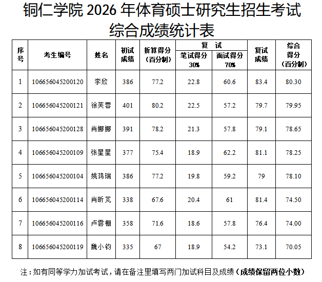 美加墨世界杯官方网站2026年体育硕士研究生招生考试 综合成绩公示