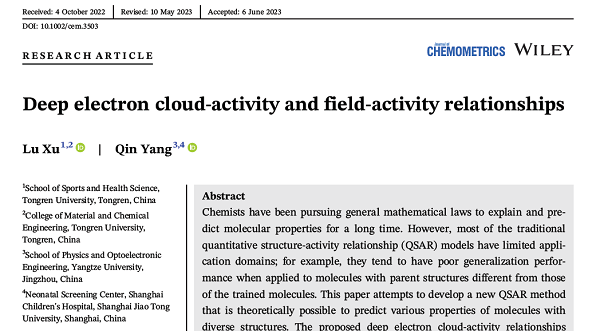 近期, 世界杯官网徐路教授与长江大学杨琴博士对上述基础化学理论问题展开合作研究,提出了深度云效关系 (Deep Electron Cloud-activity Relationships, DECAR)和深度场效关系(Deep Field-activity Relationships, DFAR)的概念和方法,在此基础上提出了构建由人工智能和大数据驱动的分子定量构效关系(Quantitative Structure-Activity Relationship, QSAR)系统的构想,在理论上有望实现对一般分子的各种性质的可靠预测。关于DECAR和DFAR的研究论文《深度云效和场效关系》发表于国际化学计量学权威期刊Journal of Chemometrics,相关的评论文章《电子云密度的人工智能和大数据分析》发表于国际英文杂志Research & Reviews: Journal of Chemistry。