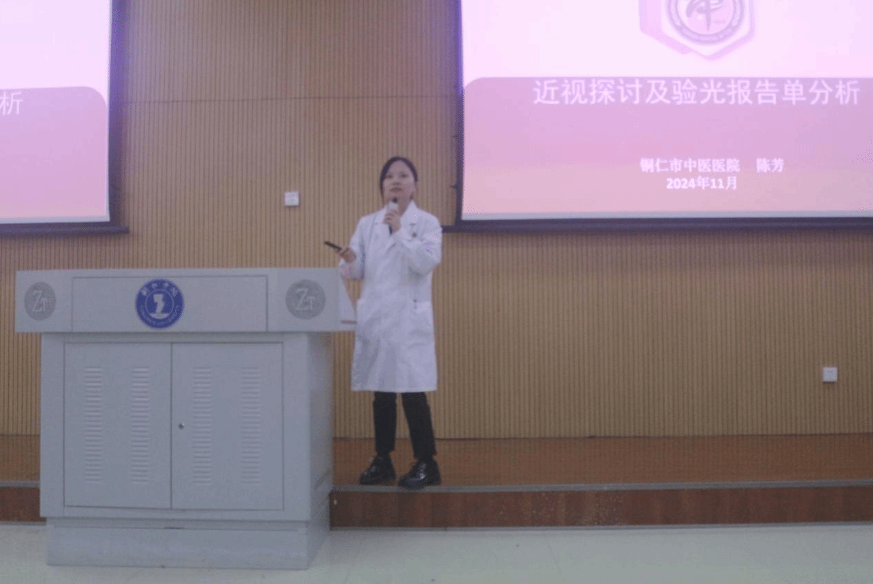 2024年11月8日下午4点,我院在博思楼105教室举行了主题为“近视探讨及验光报告单分析”的专题讲座,由铜仁市中医医院中西医结合副主任医师陈芳主讲。