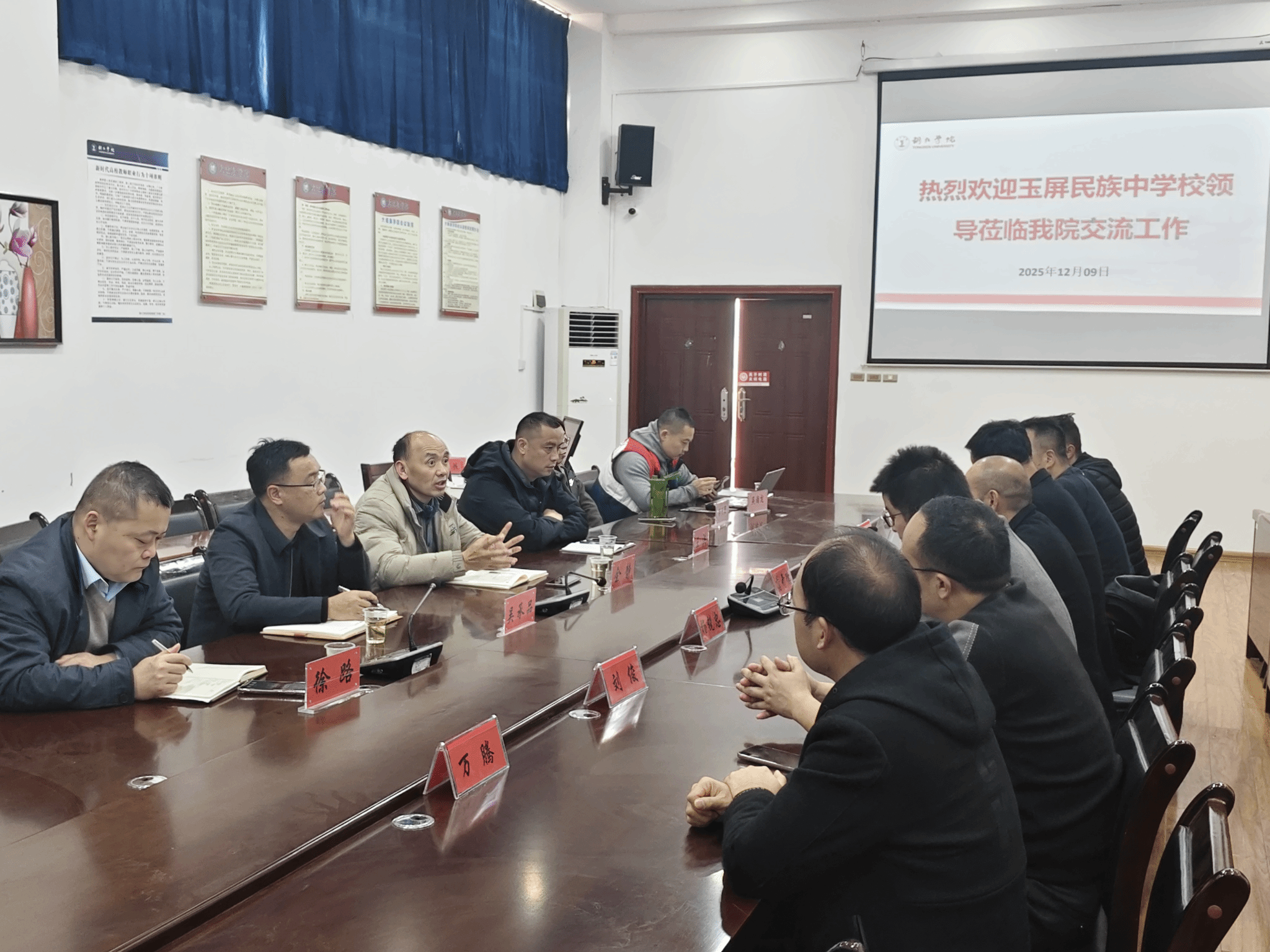 2025129日下午,玉屏民族中学党委书记蒲开德、校长杨锐忠等一行应邀与我院商洽共建硕士研究生实践教学基地事宜,旨在深化校校合作与产教融合,推动基础教育与高等教育协同发展,为区域教育高质量发展培养优质师资。我院领导班子、部门负责人及部分老师参与座谈。