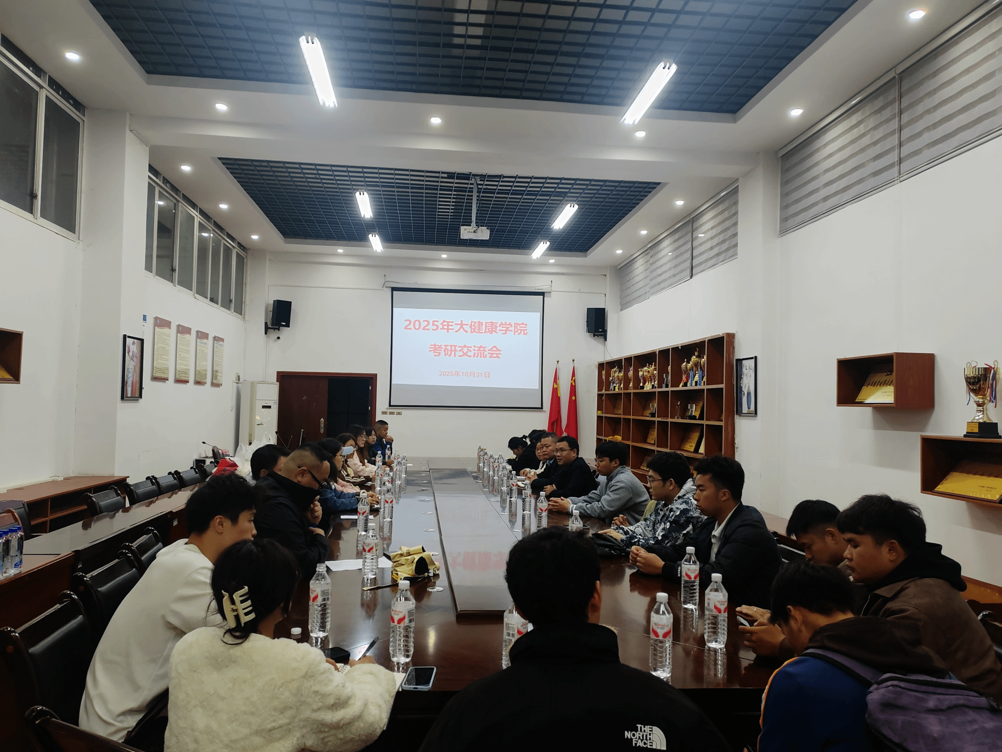 为帮助考研学子明确备考方向、掌握科学方法、提振备考信心,大健康学院于2025年10月31日晚7点在学院会议室举行了考研经验交流会。院党委书记吴承品、副院长徐路、学科负责人张子华、专业负责人马宁、印双红等老师出席了本次交流会,与2022级参加考研同学和2023级有意向考研的同学代表们齐聚一堂,共话考研征程。