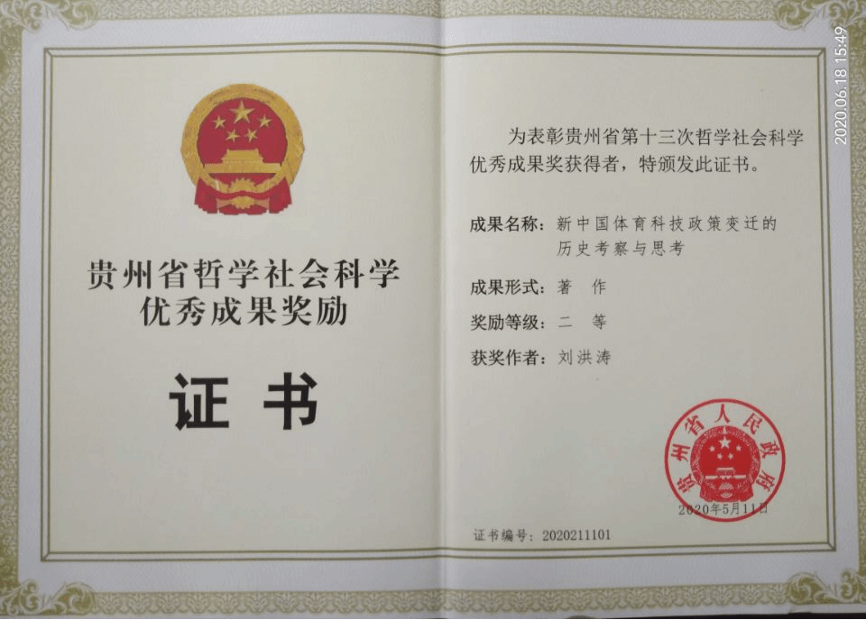刘洪涛教授荣获贵州省第十三次哲学社会科学优秀成果奖二等奖