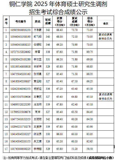 美加墨世界杯官方网站2025年体育硕士研究生调剂招生考试综合成绩公示