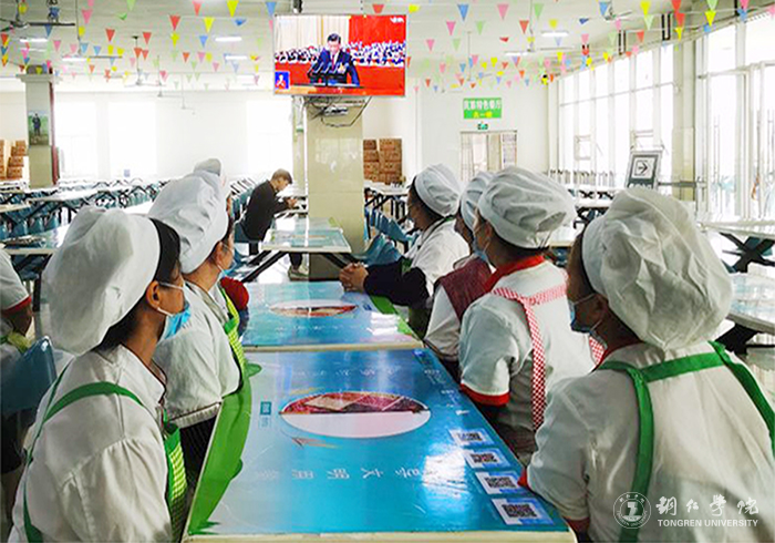 食堂工作人员集中收看开幕会现场