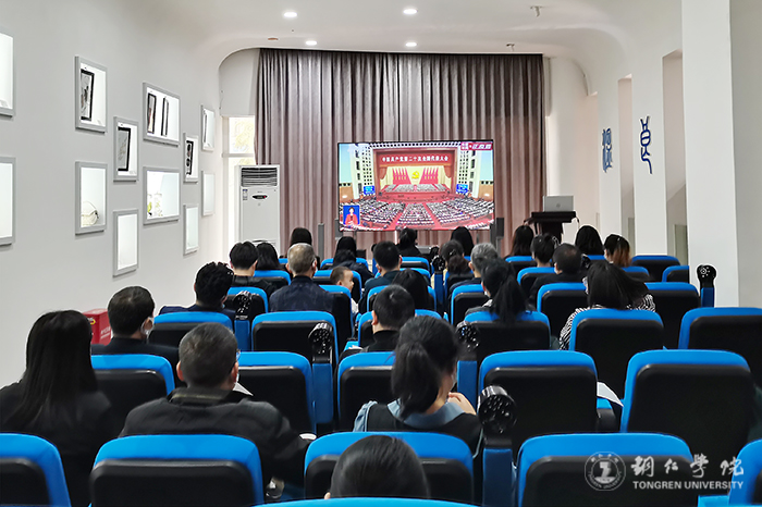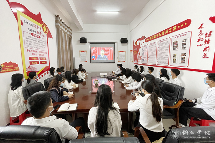 教师、学生党员集中收看开幕会现场