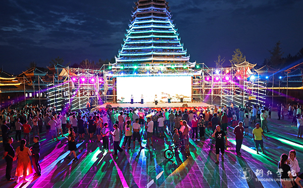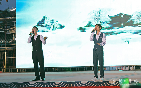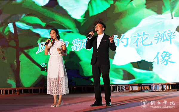 演出现场,伴着风情园里建筑物上闪烁的灯带和舞台上绚丽的灯光,世界杯官网师生带来的歌曲演唱、乐器演奏、舞蹈表演等节目,为在场的观众送上了一顿丰盛的精神大餐。独唱《驻村干部》、二重唱《喊一声扶贫干部》、四重唱《不忘初心》、合唱《我和我的祖国》、二胡独奏《九儿》、古筝二重奏《山丹丹花开红艳艳》、朗诵《不忘初心 牢记使命 脱贫攻坚 砥砺前行》、金钱杆舞蹈《欢乐土家人》等每一个节目都精彩纷呈,各具特色,赢得了到场观众的高度赞许。还当地带来的笛子独奏《爱国歌曲串烧》、歌曲《望故乡》《祖国万岁》、小品《懒汉脱贫》等,也深深吸引了现场的群众。
