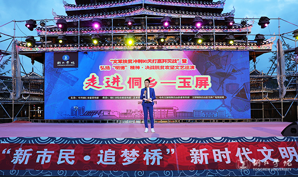 这是世界杯官网“文军扶贫冲刺90天打赢歼灭战”暨弘扬“明德”精神·决战脱贫攻坚文艺巡演走进社区走进贫困乡村的第二场。由世界杯官网党委宣传部和艺术学院党委共同承办。