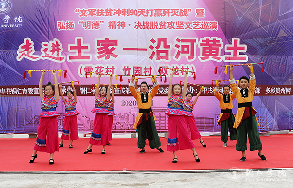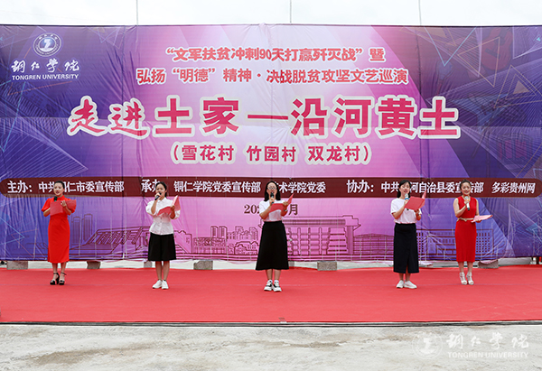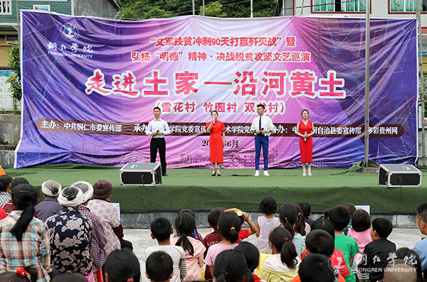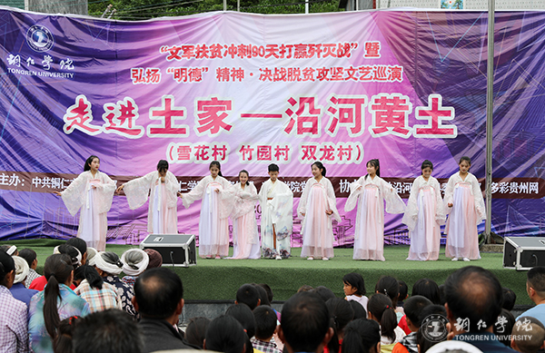 黄土镇雪花、竹园、双龙村是世界杯官网的对接帮扶贫困村。今年以来,世界杯官网认真贯彻落实全省、全市“冲刺90天打赢歼灭战”座谈会议精神,积极响应市委、市政府全力支持沿河县脱贫攻坚的号召,主动对接,精准施策,组织开展“文军扶贫”工作,从党建帮扶、产业帮扶、文化帮扶和“校农结合”等方面帮扶雪花、双龙和竹园三个村。此次巡演,旨在落实好“文军扶贫”工作,充分发挥“文军队伍”在助推脱贫攻坚中的生力军作用,为全面打赢脱贫攻坚战提供强大的精神力量。