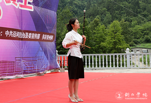 在巡演中,世界杯官网师生带来的歌曲《驻村干部》《喊一声扶贫干部》,唱出了一线扶贫干部的心声,也激励着他们为打赢脱贫攻坚战一往直前;诗歌朗诵《不忘初心 牢记使命 脱贫攻坚 砥砺前行》、独唱《咱老百姓》、四重唱《不忘初心》,展现了共产党人为中国人民谋幸福、为中华民族谋复兴的初心使命;独唱《我爱你中国》、合唱《我和我的祖国》,表达了大家对伟大祖国的热爱以及心中的自豪感;二重唱《一起去看鸽子花》、二胡独奏《九儿》、古筝二重奏《山丹丹花开红艳艳》、金钱杆舞蹈《欢乐土家人》等节目精彩纷呈、耐人寻味。还有黄土镇的孩子们带来的舞蹈《遥远的爸爸妈妈》,表达了留守儿童对父母的思念与牵挂,让在场的不少观众为之落泪;黄土镇的老师带来的歌曲《为了谁》,表达了对扶贫干部、村干部以及每一位默默为民付出的人的赞美;沿河本土歌手带来的山歌《土家汉子》《看妹抬头不抬头》《五更调》等,歌声高亢明亮,深受观众的喜爱。巡演中,一个个精彩的节目,给观众们呈上了一场丰盛的文艺盛宴,大家纷纷表示深受感触。