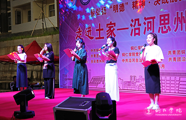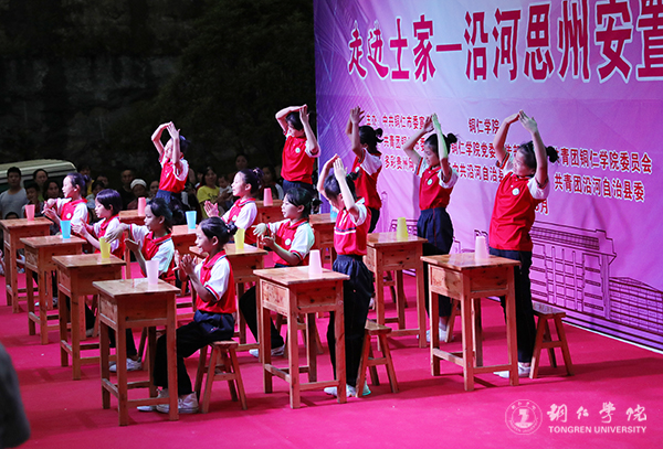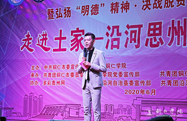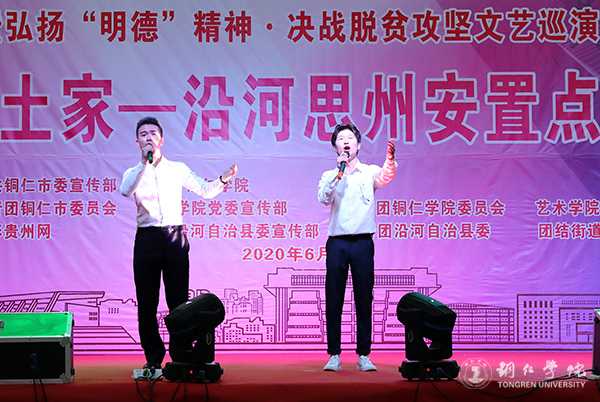 “在全面建成小康社会决胜之年,我们学校高度重视文军扶贫工作,积极响应党的号召,积极动员师生参与文军扶贫,凝聚文军力量,施展文艺才能,先后走进了江口县梵瑞社区、玉屏县康华社区、松桃县团山社区以及沿河县黄土镇、泉坝镇、思州安置点开展了8场文艺巡演,为决胜脱贫攻坚、实施乡村振兴注入了学校的力量。”此次“文军扶贫”文艺巡演小分队的领队、艺术学院党委副书记麻晔斐如是说。
