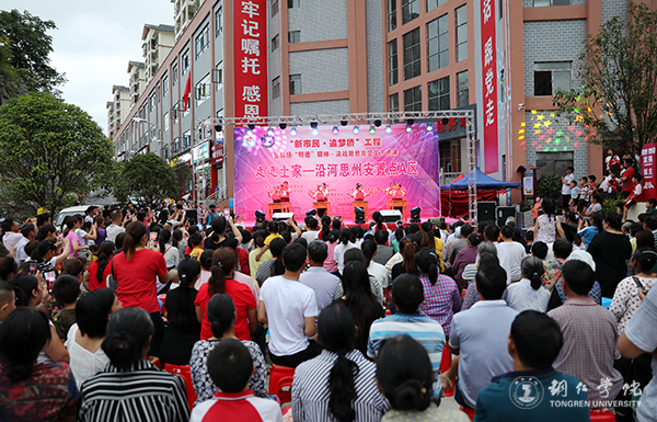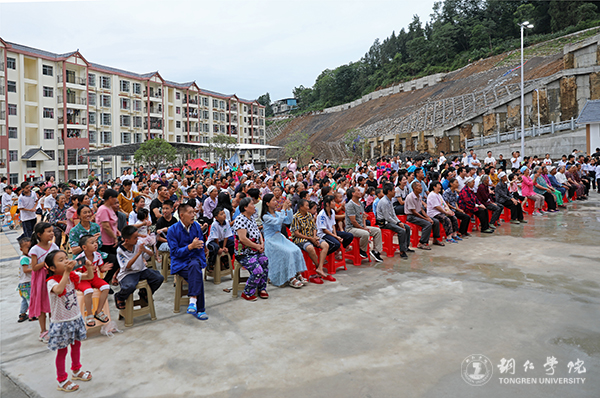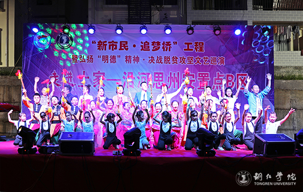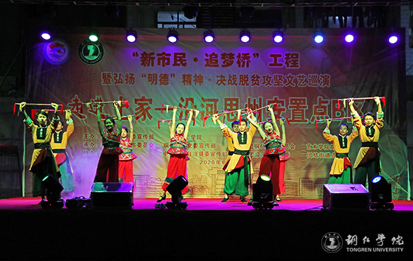 世界杯官网团委书记周曾艳说:“为落实好贵州省‘新市民·追梦桥’工程,更好地搭五桥建五家,作为地方高校,世界杯官网充分发挥高校人才资源优势,为我们的易地扶贫搬迁安置区群众送文化。这次,咱们组织的文艺团队走进沿河县思州易地扶贫安置区,为我们的社区移民居民送文艺活动,希望社区居民能更好地融入到城市生活当中。”
