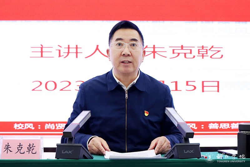 朱克乾以“自觉用习近平新时代中国特色社会主义思想武装头脑指导实践推动工作”为题,围绕“学习贯彻习近平新时代中国特色社会主义思想的收获和体会”“如何理解习近平新时代中国特色社会主义思想的科学内涵、理论体系、历史地位、重大意义”“如何把握习近平新时代中国特色社会主义思想中关于教育强国的重要内容”“树立和践行正确政绩观”“学习贯彻习近平总书记视察贵州重要讲话和对贵州工作重要指示精神”“坚定不移用习近平新时代中国特色社会主义思想凝心铸魂,推动学校各项事业高质量发展”等方面,娓娓道来,为大家讲授了一堂精彩的党课。