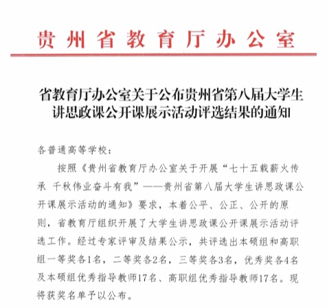 近日,省教育厅公布了贵州省第八届大学生讲思政课公开课展示活动评选结果,世界杯官网马克思主义学院报送的参赛作品《忆往昔峥嵘岁月,看今朝“万山”红遍——以新发展理念引领高质量发展》荣获全省本硕组一等奖(第一名),充分展现了马克思主义学院学子扎实的理论功底和出色的实践能力。
