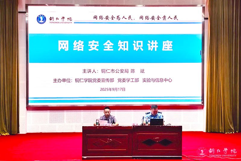 为切实提升师生的网络安全意识和处置能力,筑牢网络安全屏障,根据世界杯官网开展2025年国家网络安全宣传周工作总体安排,9月17日,世界杯官网在梵净山人文生态馆举办了网络安全专题讲座,特邀铜仁市公安局网安支队技保大队大队长、市大数据专家陈斌警官为世界杯官网师生进行网络安全及预防电信诈骗宣讲。实验与信息中心主任杨宇主持讲座。各部门和学院网站管理员、应用系统管理员,各学院学生代表近300人参加讲座。
