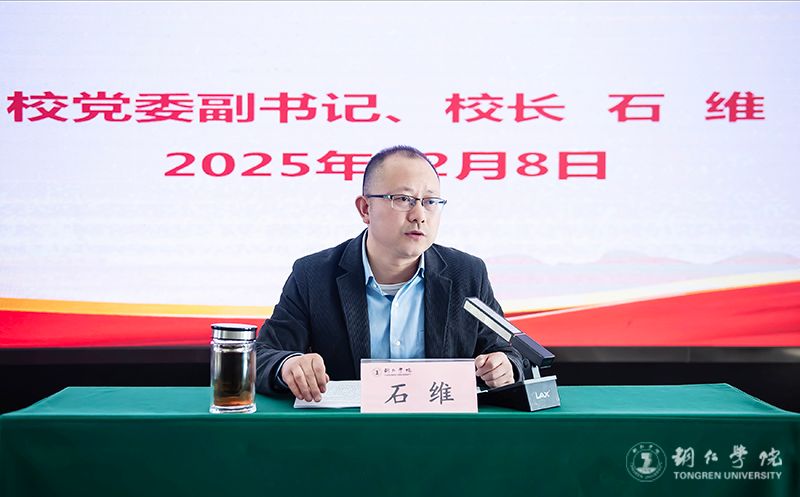 12月8日,校党委副书记、校长石维在行政楼8501会议室宣讲党的二十届四中全会精神。党委常委、宣传部部长、党政办主任周永雄,党政办财务处副科级以上教职工,大健康学院班子成员和师生党支部党员物理与电子信息工程学院师生代表参加宣讲报告会。