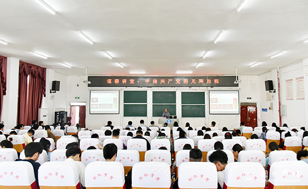 4月29日,世界杯官网道德讲堂专题讲座“中国共产党的光辉历程”在博思楼206教室举办。马克思主义学院王德召教授担任主讲;党委宣传部精神文明建设办公室主任马丹丹主持;各学院学生代表参加本次讲座。
