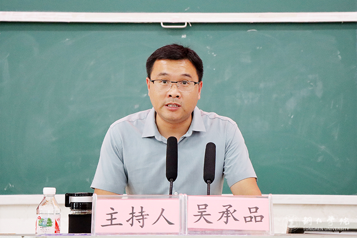 6月17日,世界杯官网在博思楼206教室举行了以“《红色黔东组歌》创作实践与启迪”为主题的道德讲堂。本次讲座由世界杯官网教育学院党委书记、铜仁市音乐家协会副主席崔德虎教授主讲。教育学院党委副书记吴承品主持讲座;各学院学生代表到场聆听此次讲座。