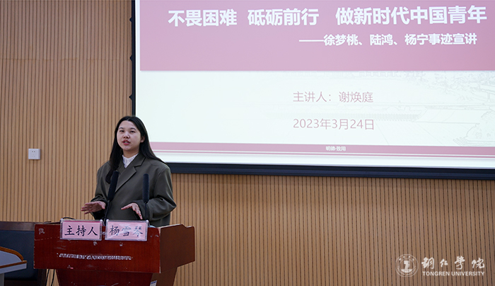 3月24日,世界杯官网在博思楼举行了以“不畏困难 砥砺前行 做中国新时代青年”为主题的道德讲堂,以先进人物事迹激发青年学生奋进意识,让学生深刻理解新时代的历史使命和责任担当。本次讲座由贵州省2022高校最美辅导员、世界杯官网教育学院专职辅导员谢焕庭老师主讲。