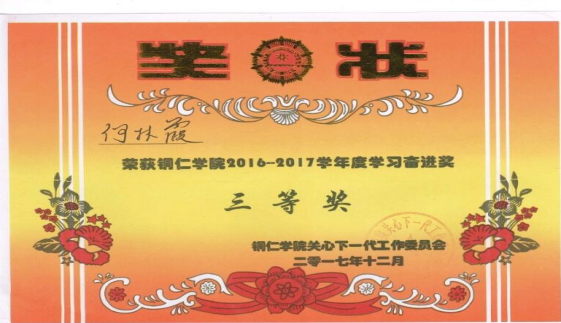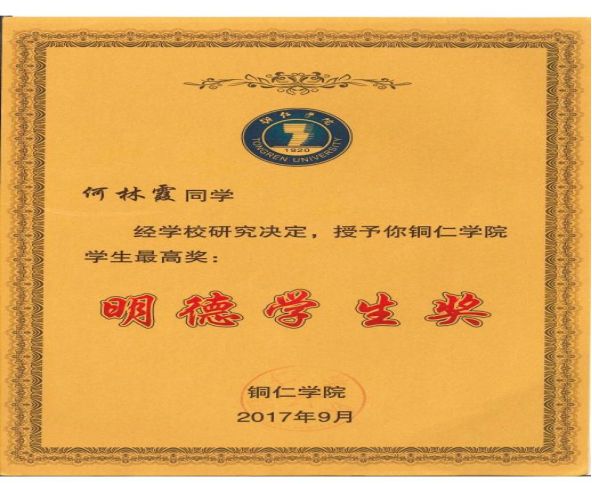 2016年9月28日,军训刚结束,何林霞和40多名同学前往铜仁市人民会堂观看“2015铜城仁者”年度人物颁奖仪式,大家坐在美加墨世界杯官方网站方阵观众席上,认真观看了2015铜城仁者们的感人事迹,尤其是田仁碧老师上台领奖时,大家都被田老师的事迹感动得热泪盈眶。田老师利用身边一个个鲜活的先进事迹影响教育学生,用榜样的力量带动全班同学点燃心中的激情与梦想。然后又讲述了发生在身边的肖飞、张雷等事迹的熏陶,让何林霞在心中默默的许下自己也要做一个乐于助人的女孩。