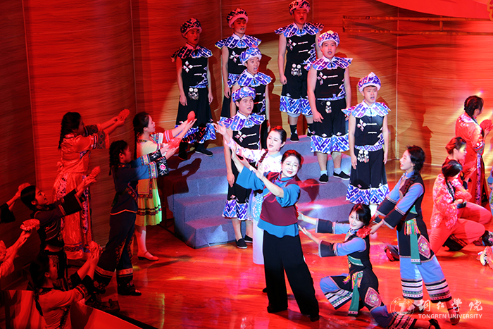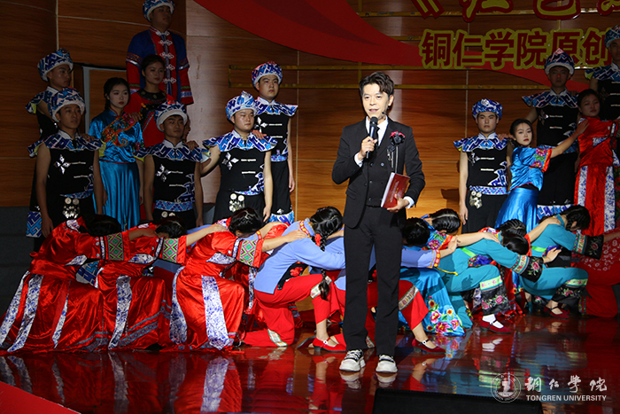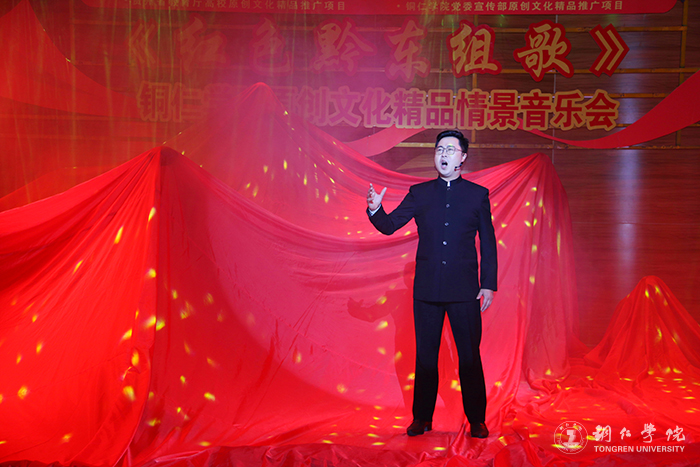 “黔东是一片赤色的土地。”音乐会尾声《黔东儿郎当红军》,描绘了黔东地区家人送孩子参军的温情景象,表演师生精神饱满、深情演唱,形象地表达了当时人民群众对党的敬仰之情和跟党走的坚定信仰。