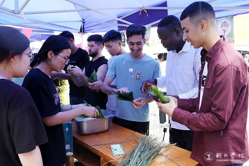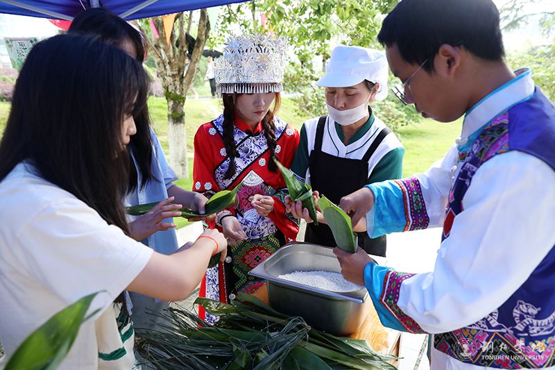 “这样才能包出好看的形状。”“这样才能把绳子扎得更紧,煮的时候不容易露馅。”在包粽子体验现场,经验丰富的食堂阿姨边包边向同学们传授经验。来自铜仁几所高校的外国留学生,也纷纷加入到活动中,与中国学生一起,学习包粽子,体验端午节文化,感受中华优秀传统文化的魅力。大家看着一个个包好的粽子,喜笑颜开,欢声笑语不断。每一颗粽子,都承载师生着对历史的敬畏、对文化的热爱和对未来的期待。